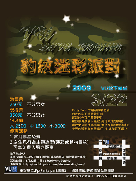 3.女生凡符合主題造型(迷彩或動物圖紋)可享免費入場之優惠